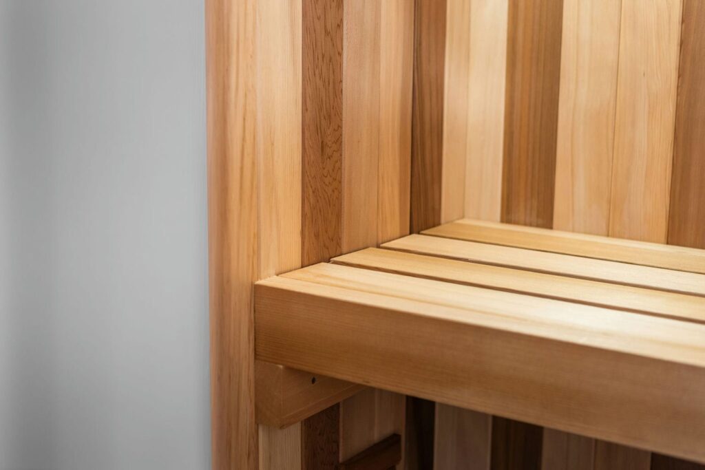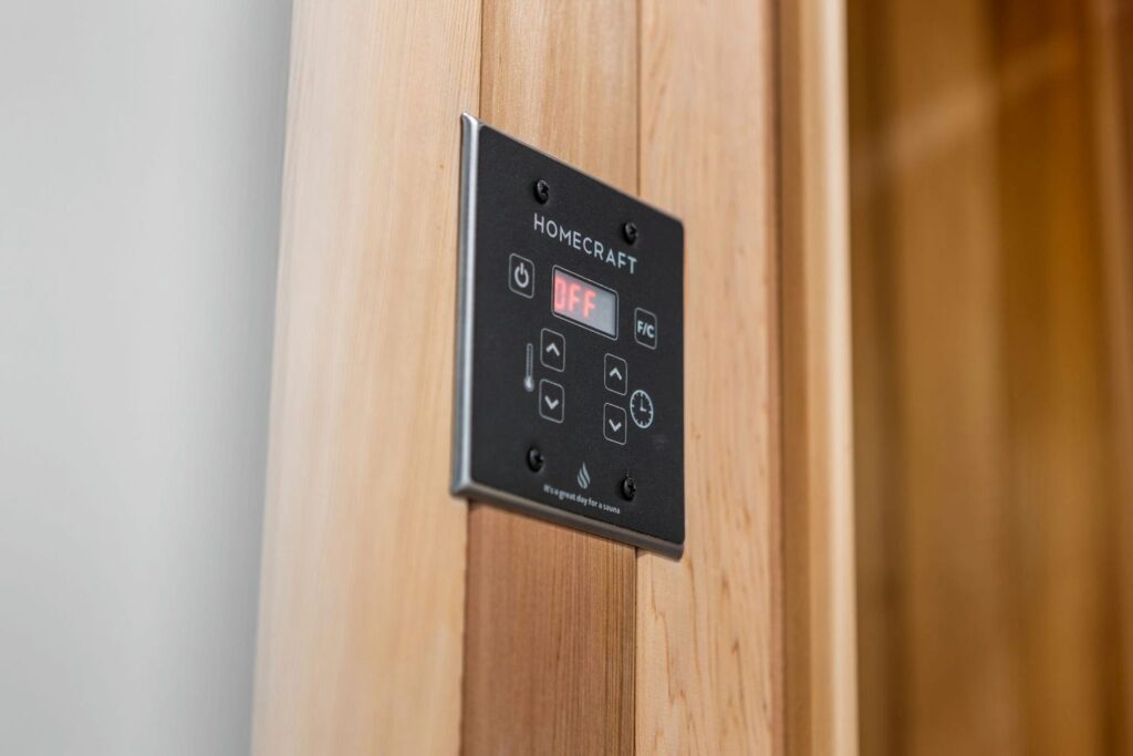 - Sauna constructed with clear, grade A+, western red cedar sourced locally with [2] floating benches, corner heater and digital control