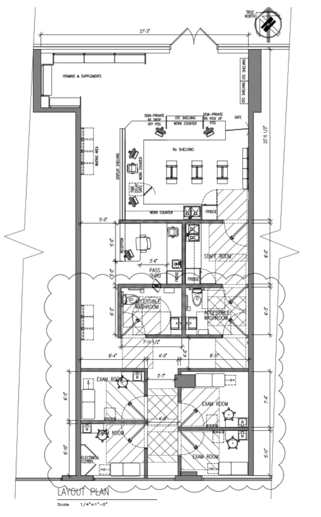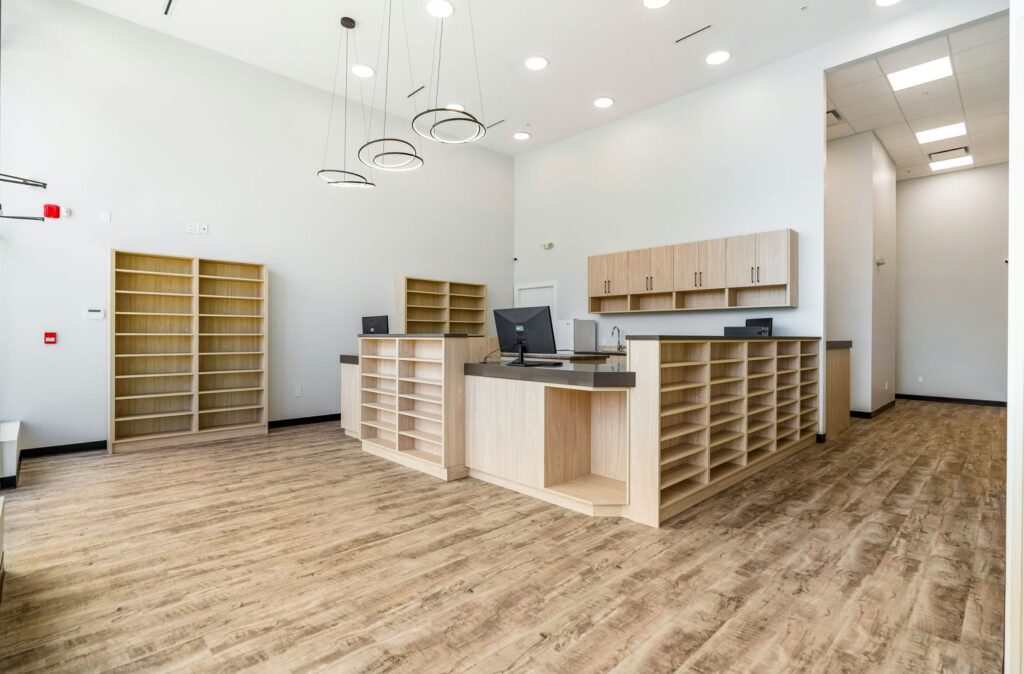 - Functional, open concept pharmacy and medical clinic consisting of a large pharmacy at front, staff room, reception area, 2 spacious bathrooms and 4 thoughtfully designed medical rooms
